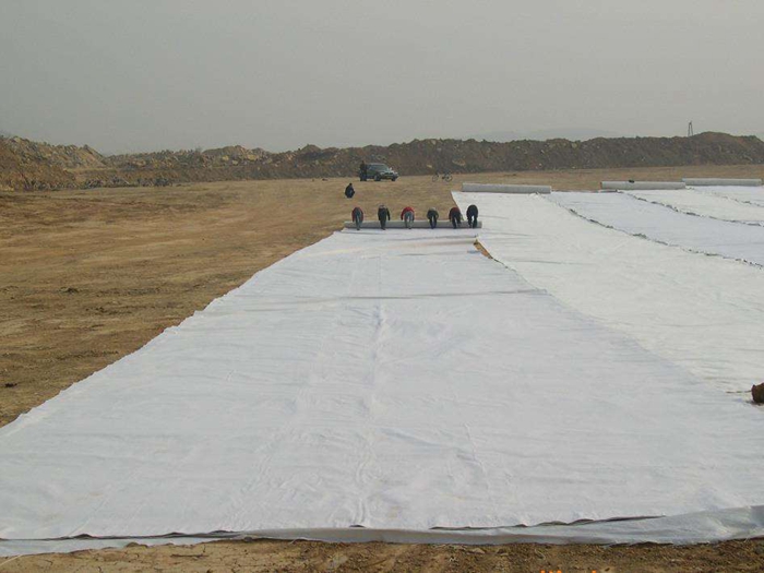土工布作為土工膜的保護層,使保護防滲層不受損壞。為減少紫外線照射,增加抗老化性能,更好采用埋入法鋪設。