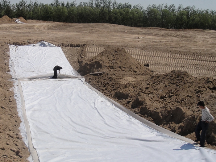 (5)施工時(shí),應(yīng)避免石塊,重物直接砸在土工膜上、更好邊施工、邊鋪設(shè)膜、邊覆蓋保護(hù)層。